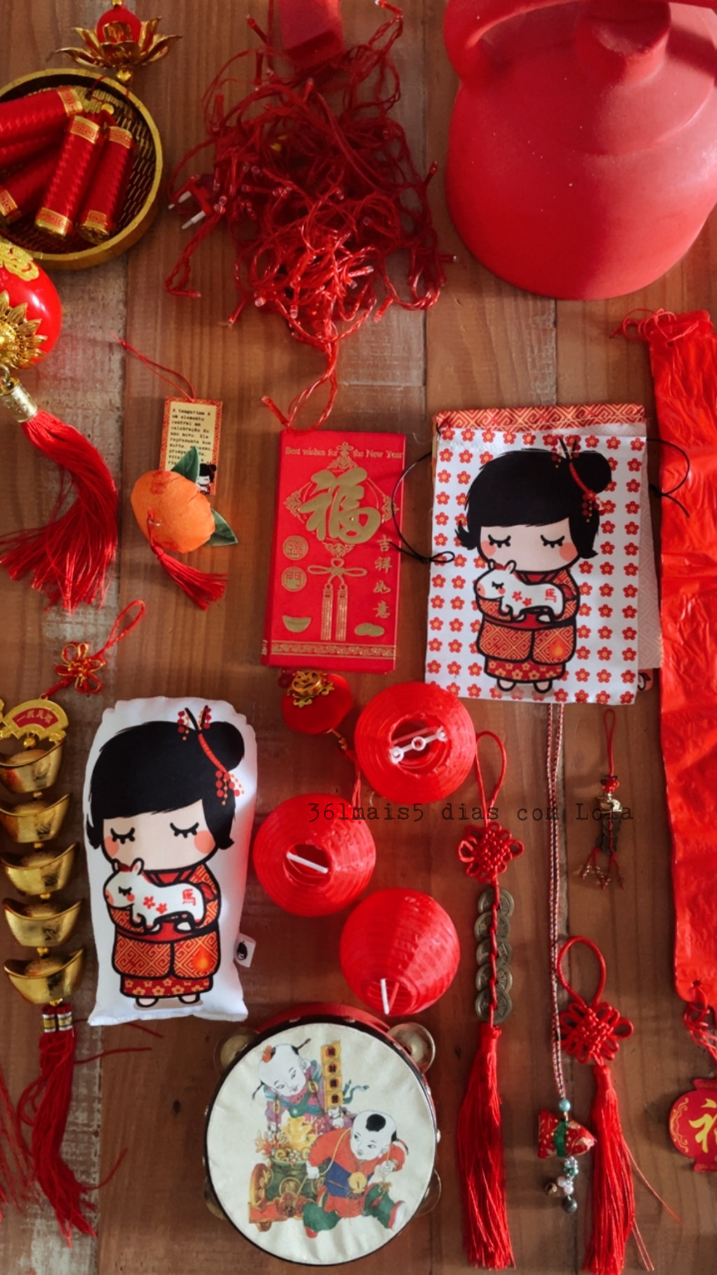 Algumas pessoas perguntam sobre a celebração, a decoração e o que fazemos no dia. A decoração sempre envolve vermelho: uma toalha, algumas moedas, a Lola e boa intenção já fazem a festa. Na realidade, penso que o que importa mesmo é a intenção - a mentalização, a dedicação da sua energia e dos seus pensamentos sobre coisas boas e renovação - é isso que realmente importa.