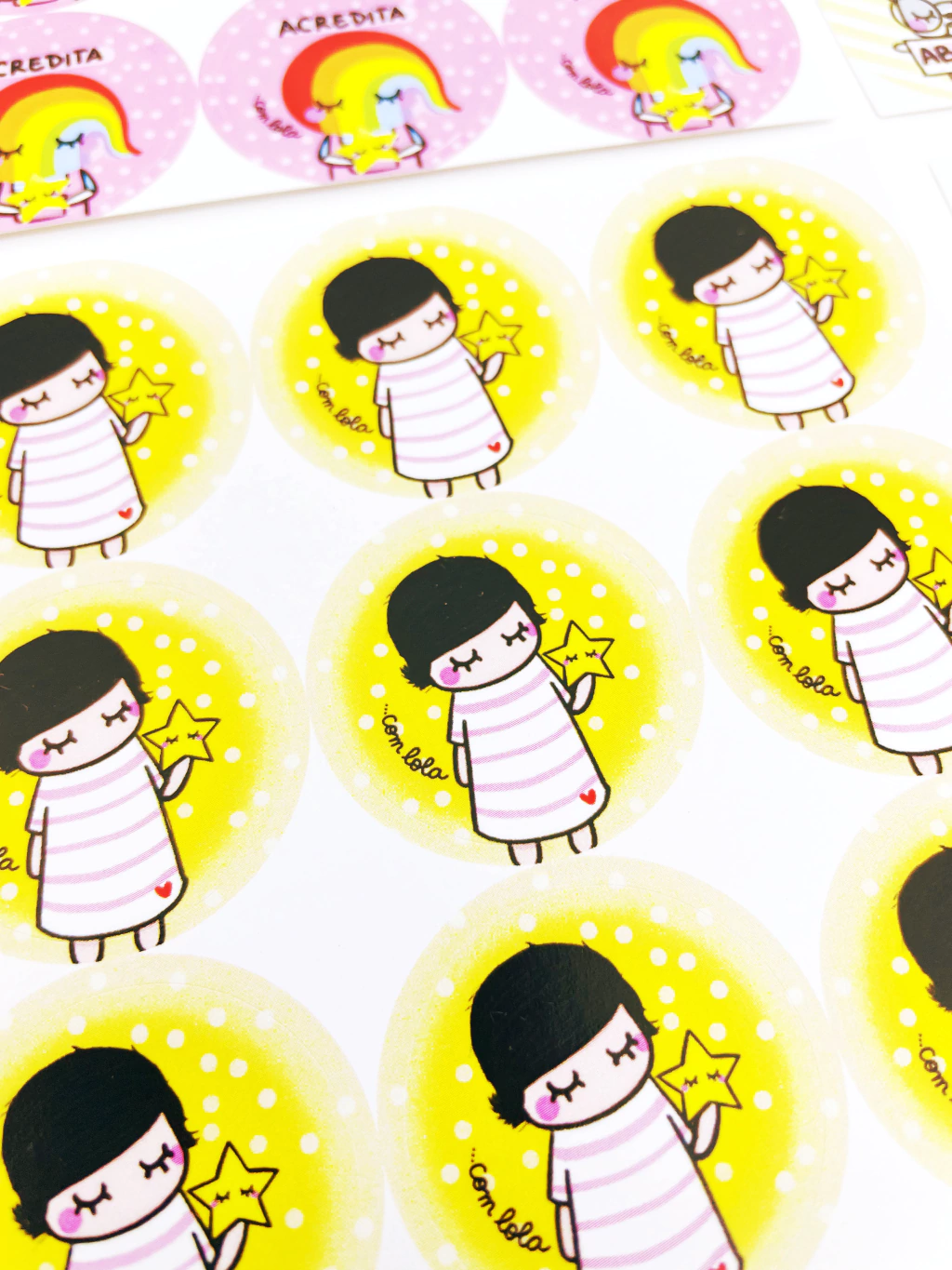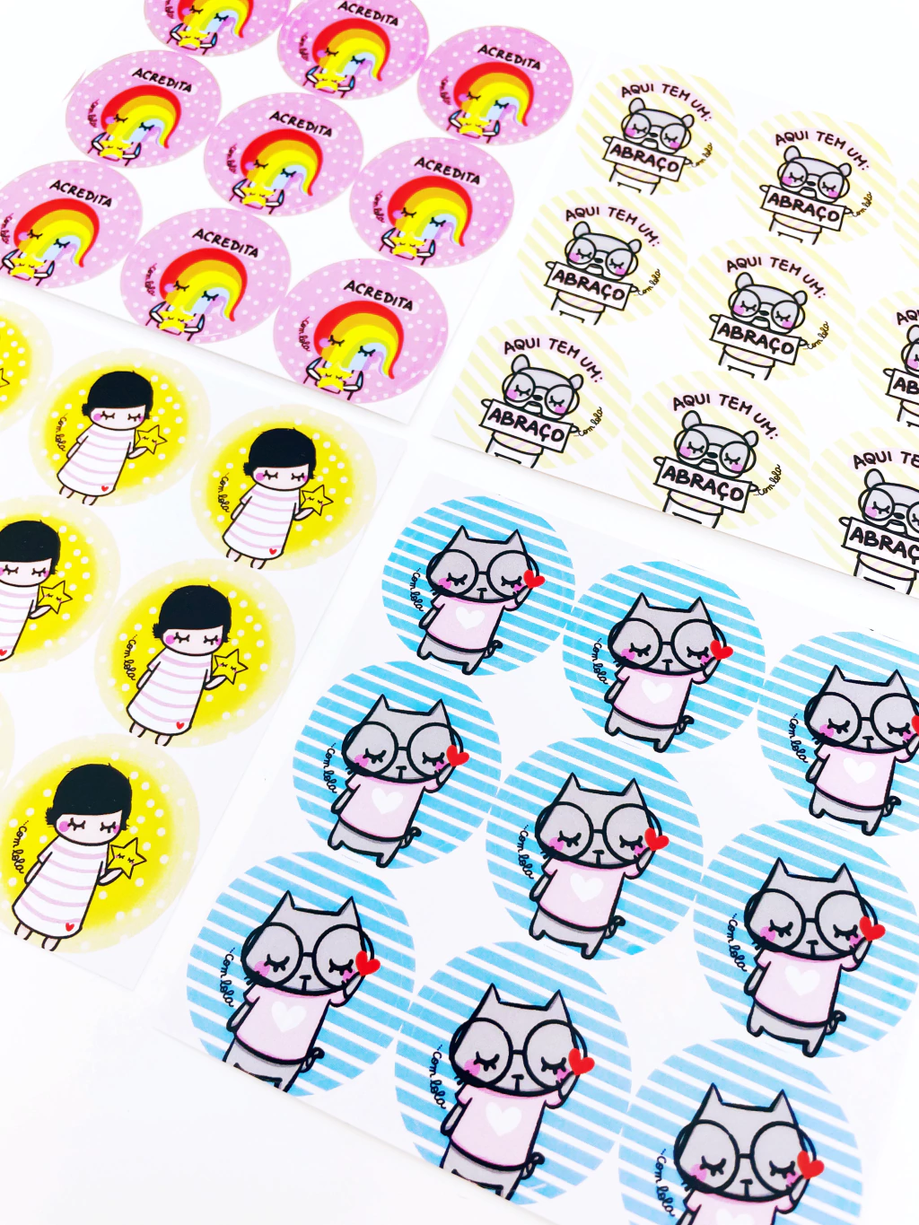 Adesivos! Adesivos! Adesivos! Sim, amamos adesivos! Neste pacote são 4 cartelas de adesivos, sendo 4 tipos diferentes (1 de cada). Neste pacote tem a Brilha, o Joaquim, a Lola e o Dôdu!