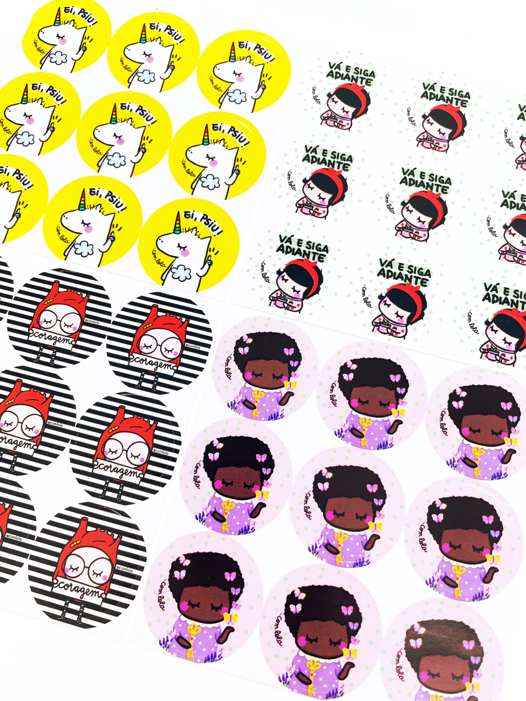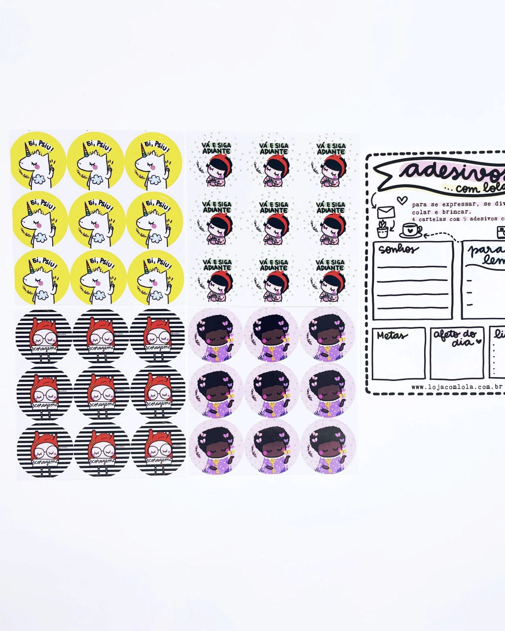 Adesivos! Adesivos! Adesivos! Sim, amamos adesivos! Neste pacote são 4 cartelas de adesivos, sendo 4 tipos diferentes (1 de cada). Neste pacote tem o Tuutu, a Lola, a Kik e o Lyl!