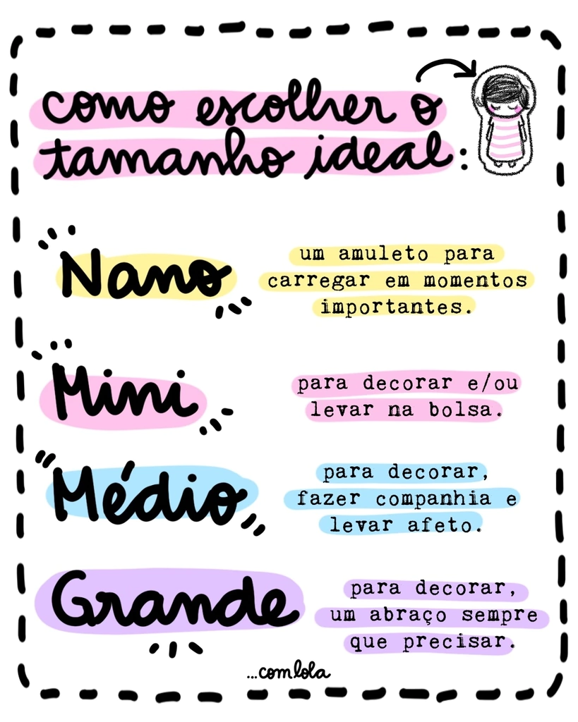 O tamanho mini é ideal para decorar a sua prateleira com a mensagem do seu personagem favorito! Também fica muito bem para acompanhar seu passeio, para suas fotos com paisagem e seus lugares prediletos!