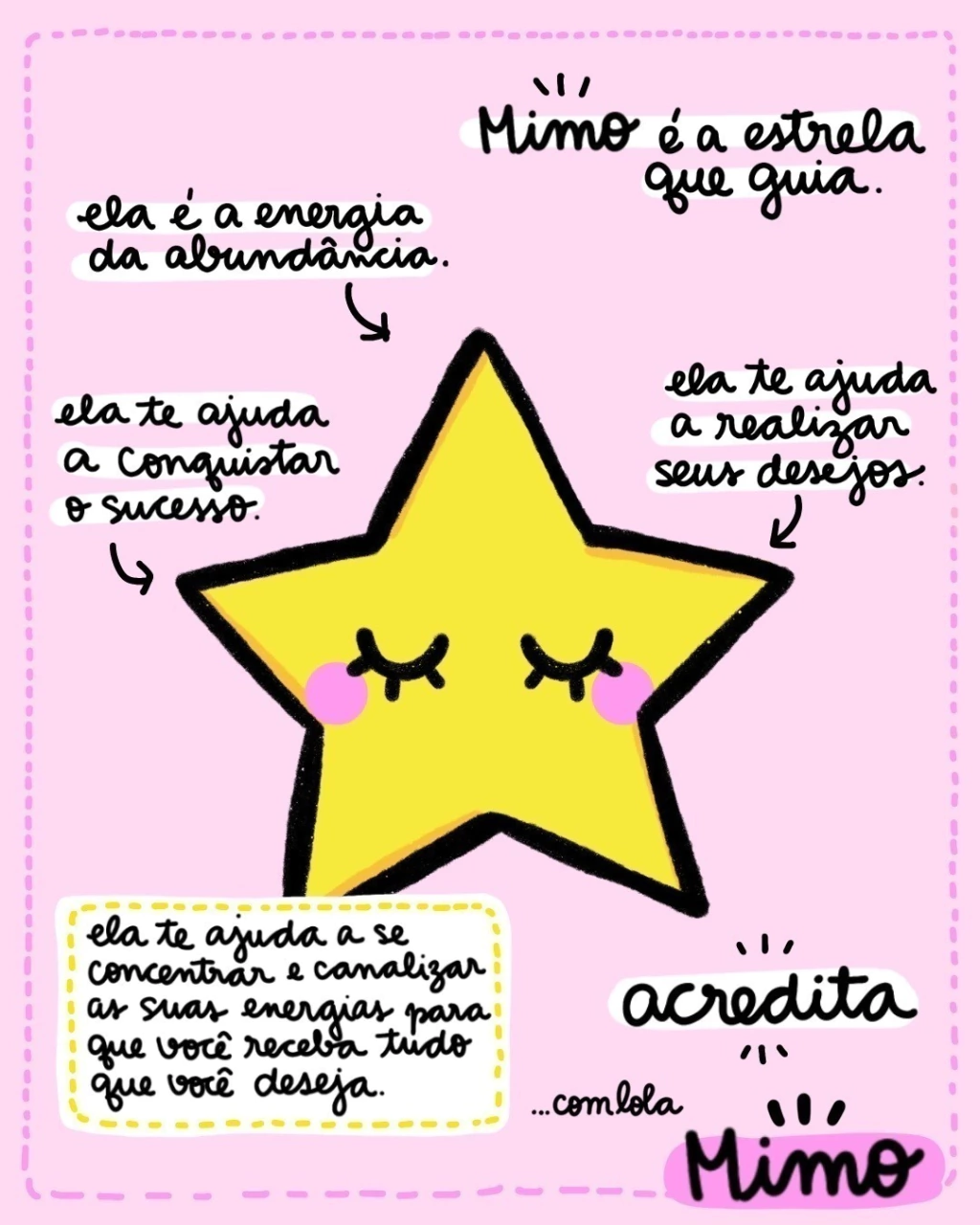 Mimo é a estrela que guia. Ela é a energia da abundância, a realização dos desejos, a conquista do sucesso. Ela te ajuda a se concentrar e canalizar as suas energias para que você receba tudo que você deseja. ACREDITA.