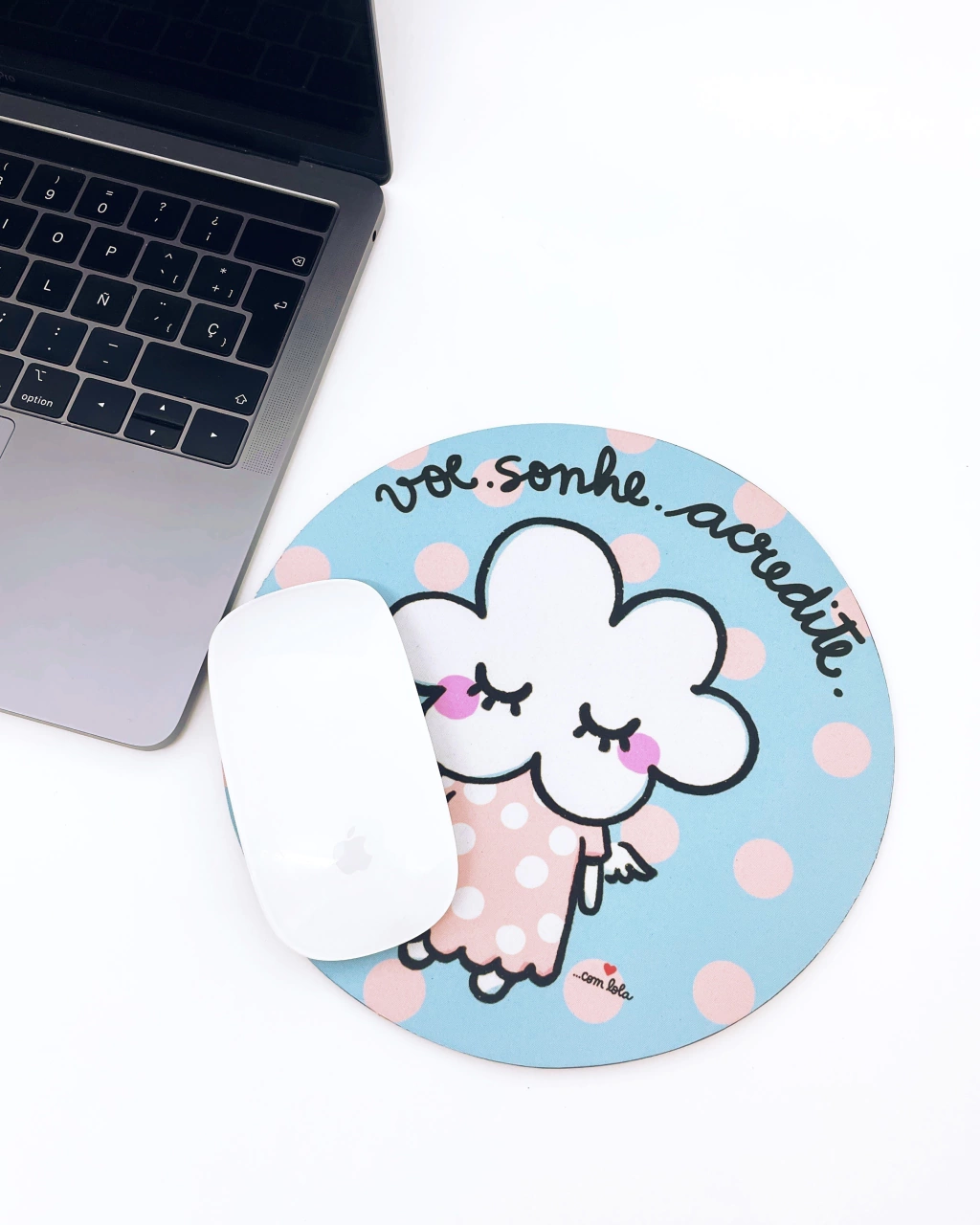 Uma nuvem voa feliz no céu: é Ninha brincando com sua criatividade. Ninha nos ensina que a imaginação pode nos levar onde a gente quiser. Ela nos ajuda a desbloquear coisas que nos travam, para uma vida mais criativa, mais leve e mais feliz.