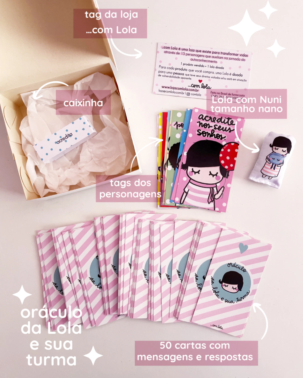 Com o Oráculo da Lola e sua turma, você encontra não apenas respostas, mas também um caminho para o seu desenvolvimento pessoal. Este oráculo é repleto de mensagens reflexivas que vão te guiar em momentos de dúvida e incerteza.