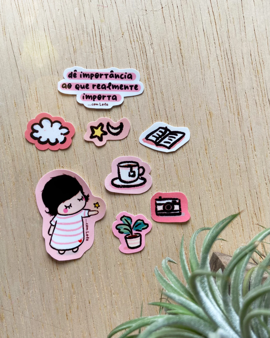 Mini adesivos para telembrar do que realmente importa. Para suajornada do autoconhecimento, para focar no que faz sentido. Uma ótima companhia paramomentos de reflexão, aLolacarrega uma estrela que simboliza o caminho da iluminação, a consciência, o caminho e a essência.
