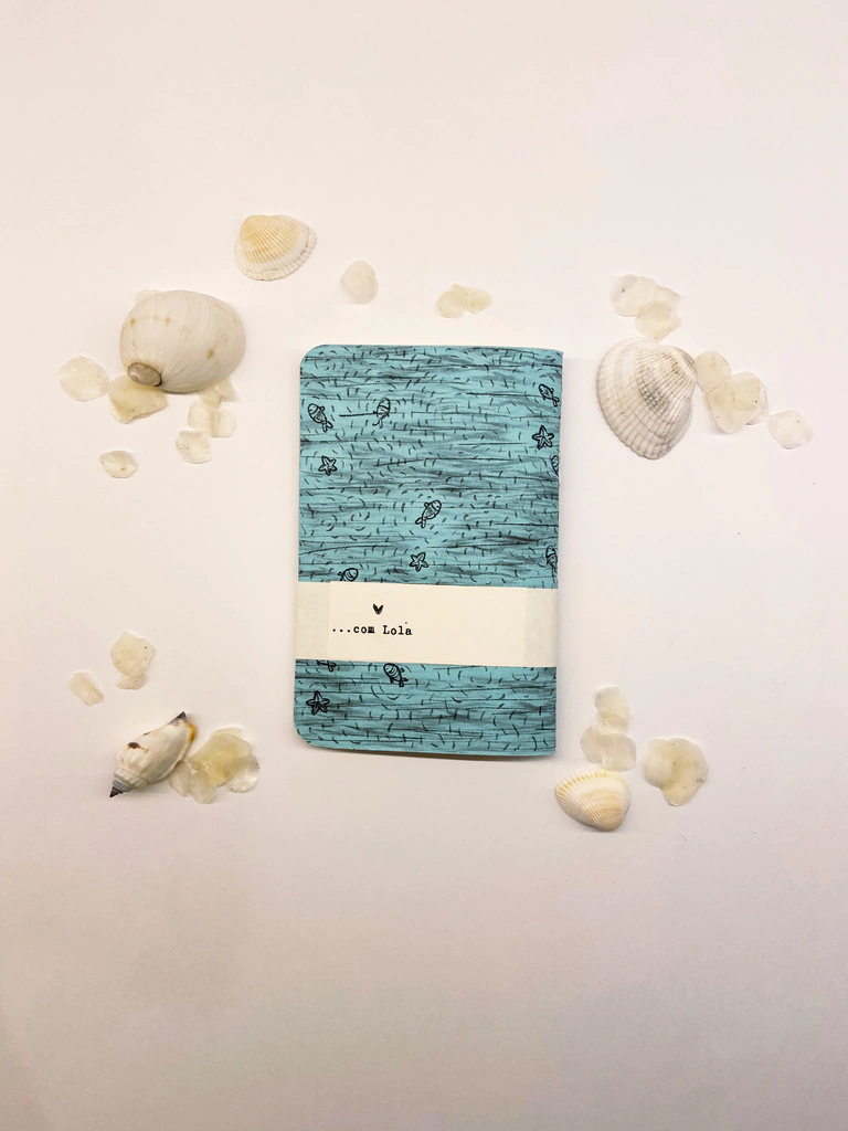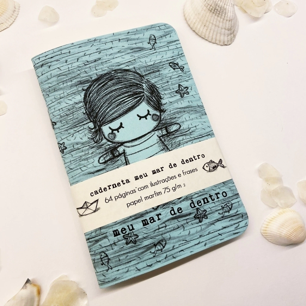 miolo papel cor bege 75g/m sem pauta com ilustrações e frases + capa verde água com impressão laser 180 g/m